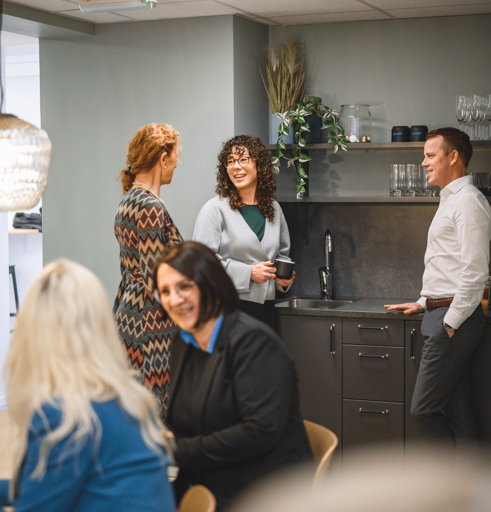 I våra nyrenoverade kontor kan du arbeta vid eget skrivbord, ta ett digitalt möte ostört, samla en större grupp för konferens eller sjunka ner i soffan för att fika och prata.
